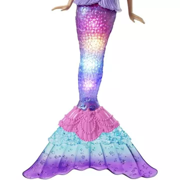 A Barbie Dreamtopia - Tündöklő szivárványsellő Barbie baba tökéletes ajándék a 3-7 éves kislányoknak, akik szeretik a mesék, tündérek, hercegnők és sellők világába elképzelni magukat. A sellő Barbie hosszú, szőke hajában rózsaszín csíkok vannak és tiarát visel. Merítsd a gyönyörű Barbie babát a vízbe és láthatod, ahogy csillámos és gyöngyházas uszonya a négy szín show egyikében ragyog.