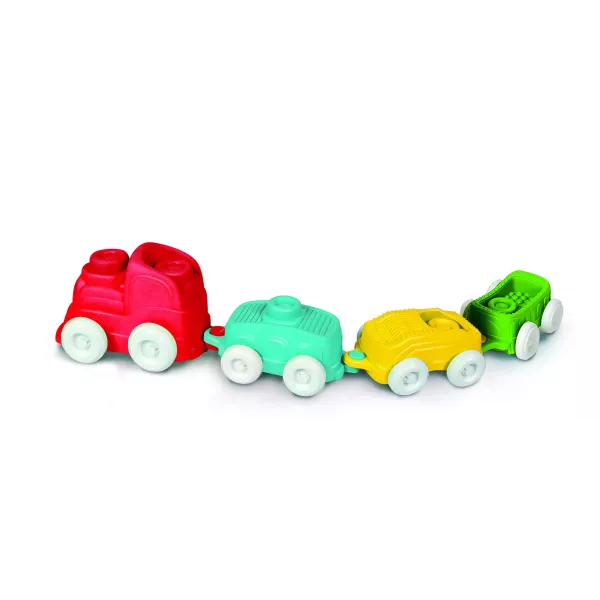 Ez a szenzoros vonatkészlet biztosan a babák kedvence lesz. A játék segíti a picik érzékszerveinek fejlődését, puha anyagból készült, így biztonságos még a legkisebbeknek is. A színes vonatkészlet felületén különböző textúrák tapinthatók, és a kerekek mozognak, ami még izgalmasabbá teszi a játékélményt.