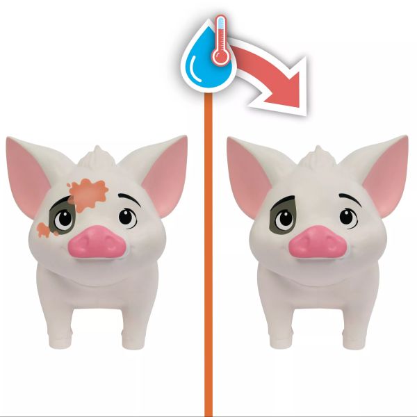 A Disney Hercegnők Vaiana 2. testvérek játékszettben a rajzfilm főhősének kishúga, Simea és kedvenc malaca, Pua, valamint további szuper kiegészítők várnak rátok. A mese által inspirált külsővel érkező karakterek készen állnak arra, hogy a gyerekek képzeletének tengerén új kalandokat éljenek át. A feldíszíthető kunyhó egy szuper fürdető is egyben, ahol Simea megmosdathatja kiskedvencét. Meleg vízzel Pua pofijáról a foltok is eltüntethetők és ez a vidám játék megismételhető.