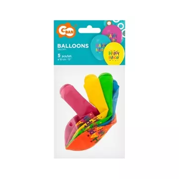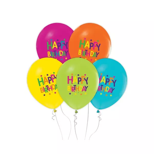 Tartalom: 5 db színes lufi Happy Birthday felirattal