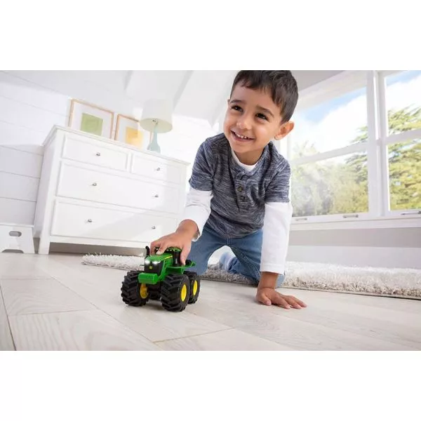 A kisfiúk kedvenc járműve, a népszerű John Deere traktor készen áll az akadályok leküzdésére. Extra nagy méretű gumiabroncsai átmennek a kidőlt fán, vagy akár egy sziklatömbön is! A srácok guríthatják, tologathatják vagy versenyt is rendezhetnek vele, sőt, a járgány fény- és hanghatásokat is ad, ha megnyomják a traktor tetején lévő gombokat. Dudál, járó motor hangot ad ki és világítanak a lámpái.