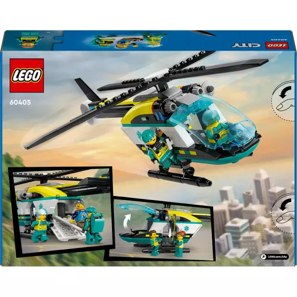 Lepd meg a mindennapi hősödet a LEGO® City Mentőhelikopter (60405) játékszettel! A 6 éves vagy annál idősebb korosztálynak készült szett tartalmaz egy játék helikoptert vagány vezetőüléssel, forgó propellerrel, felnyitható rakodótérrel és működő csörlővel.