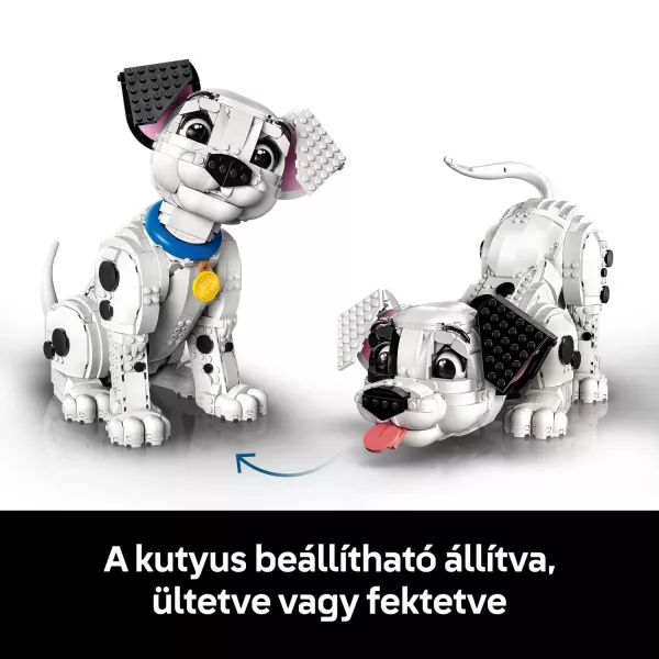 • Megépíthető modell felnőtt Disney rajongóknak – Lepd meg magad egy bohókás kiállítási darabbal, 101 kiskutya: dalmatakölyök építőszettel, amely játékos kreativitással vár a kiskutyafigura megépítése során • Felnőtteknek szóló LEGO® építőszett – Építsd meg vagy szabd testre a 101 kiskutya című, népszerű Disney-film egyik kölyökkutyájának megépíthető modelljét, vagy alkoss egyedi verziót az átépítési lehetőségek és különféle testhelyzetek segítségével! • LEGO® Disney szereplők – Állítsd be Paca, Pelyhes vagy bármelyik másik, általad épített LEGO dalmatakölyök elemeit, és forgasd el a fejüket, emeld fel a farkukat, és döntsd el, hogy álljanak, üljenek vagy feküdjenek! • Egy gyűjthető és nosztalgikus, megépíthető modell – Válassz ki egy LEGO® ǀ Disney kutyust, és állítsd ki abba a helyiségbe, amelyiket játékos pöttyökkel és egy különféle pózokba állított, vicces kis figurával szeretnéd feldobni
