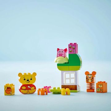 A szülőkre és kisgyermekeikre izgalmakkal teli játék és játékos tanulás vár a LEGO® DUPLO® | Disney Micimackó születésnapi zsúrja (10457) építőszettel. Ez a színes, fejlesztő- és építőjáték a fantáziadús játékon keresztül segít a 18 hónapos vagy annál nagyobb gyerekeknek fejleszteni a kisgyermekkori készségeiket.