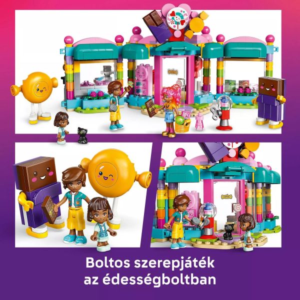 A lányok, a fiúk és az ifjú építők felfedezhetik a LEGO® Friends Heartlake City édességbolt (42649) szettet, amely telis-tele van minden jóval és vidám részletekkel. A készletben 2 minibabafigura, egy mikrofigura, egy macskafigura és rengeteg kiegészítő biztosítja a kreatív játékot.