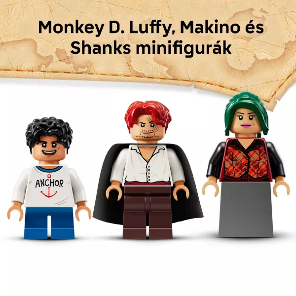 • Akcióhősös játék – A készlet Luffy, Shanks és Makino, a Netflix-műsor 3 jól ismert szereplőjének minifiguráit tartalmazza
