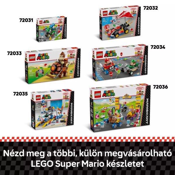 Ez a gyűjthető Nintendo® készlet ideális önálló játékhoz és közösségi tevékenységekhez is. Keresd a LEGO Super Mario: Mario Kart választék többi (külön kapható) járművét, hogy versenybe szállhass velük!