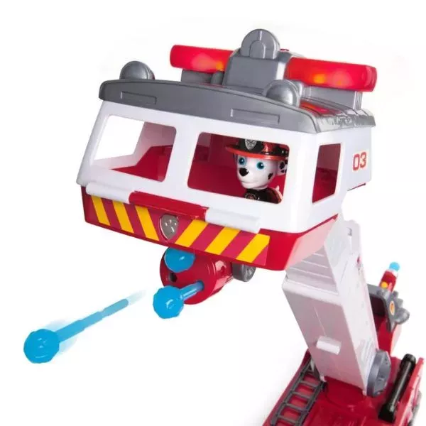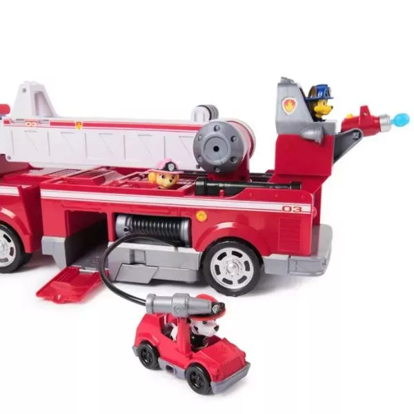 A gyerekek újra átélhetik a sorozatban látott kalandokat ezzel a tűzoltóautóval és a Mancs őrjárat kutyikkal. A tűoltóautó egy 60 cm hosszú létrával, és különböző fény- és hanghatásokkal rendelkezik. A csomag számos kiegészítőt tartalmaz, többek között Marshall, Chase és Skye figurákat, akik alig várják, hogy mentőakcióra induljanak a gyerekekkel. A tűzoltóautó három ágyúval is fel van szerelve, amelyekkel vízlövedékeket lehet kilőni, valamint egy fogóval, a sikeres mentőakciókhoz. Egy mini játékautó is a csomag része a kisebb küldetések végrehajtásához.