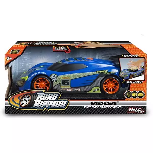 A Speed Swipe járgány a legmenőbb high-tech versenyautó! Az autó tetején lévő kapcsolókkal bekapcsolható a motor és a világítás. Könnyű és valósághű hangokkal van ellátva. Jól megépített és minőségi autó, beleértve a fényeket és a valósághű hanghatásokat, amelyek biztosan lenyűgözik a gyerekeket.