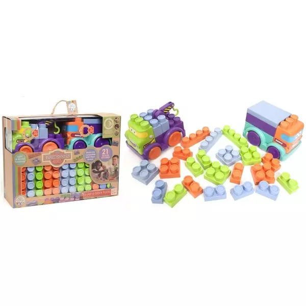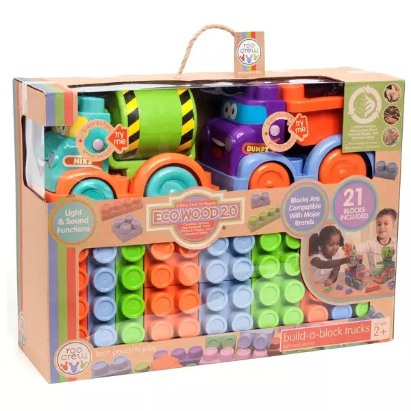 Építőkockák + építkezési járművek = órákon át tartó játék. Ráadásul a Roo Crew szettjével a gyerekek környezettudatosan építkezhetnek, ugyanis
