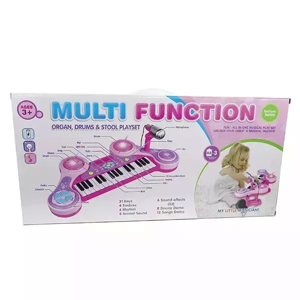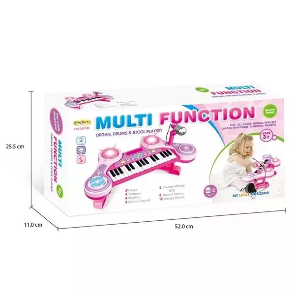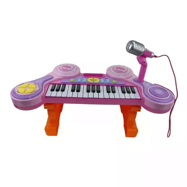 A 31 billentyűs szintetizátor egy élénk pink színű, zenés játék, amely ösztönzi a kreativitást és a zenei készségek fejlesztését.