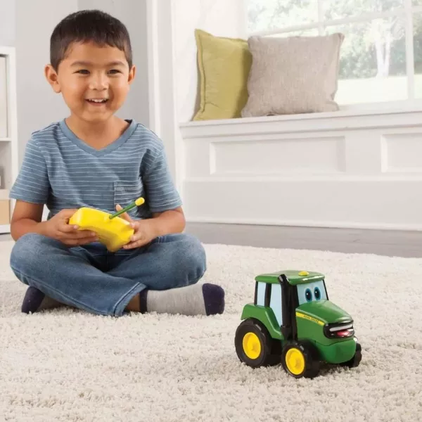 A Tomy: Távirányítós Johnny traktor csak arra vár, hogy a gyerekek felszántsák velük a termőföldeket. Csak a gyerekeken múlik, hogy merre visz majd az aranyos arcú zöld traktor útja: a kukorica- vagy a repceföldeket szántja majd fel előbb. Persze akkor sem kell aggódni, ha a kis mezőgazdasági munkagép akadályba ütközne: ha elég gyorsan irányítják őt a kis sofőrök, semmi sem állhat az útjába.