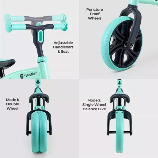 Az Yvelo Junior futóbicikli akár már 1,5 éves kortól használható, ráadásul az opcionálisan használható dupla hátsó kerekének köszönhetően nagyobb biztonságot ad és könnyebbé teszi az egyensúly megőrzését. A futóbicikli segít elsajátítani és fejleszteni a biciklizéshez szükséges egyensúlyérzéket és mozgáskoordinációt, hogy a gyerekek segédkerekek használata nélkül tanuljanak meg biciklizni. A bringa váza könnyű, az ülése kényelmes és hosszított, ami lehetővé teszi, hogy igény szerint közelebb üljön a gyerek a kormányhoz. Az ülés és a kormány magassága állítható. Defekttől nem kell tartani, ugyanis a kerekek defekttűrőek, így a bicikli használható göröngyösebb, piszkosabb részeken is. Strapabíró darab, amely akár a tesókat is kiszolgálhatja. Maximum teherbírás: 20 kg A bringa mérete: 70 x 31 x 47,5 cm Csomagolás mérete: 23 x 61 x 15 cm CSOMAGOLÁS SÉRÜLT, DE A TERMÉK ÉP.